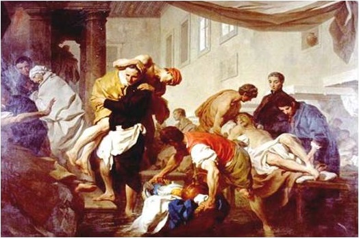 Las imágenes presentes describen a la perfección los cuidados que se llevaban a cabo, estos ejercían el papel de cuidadores, siempre en nombre de Dios, al que se le atribuía la cura de las enfermedades, con lo que ganaban creyentes. Podemos observar el ambiente lúgubre, a los clérigos ejerciendo como personal sanitario y como no, las imágenes nos transmiten un cierto dolor.