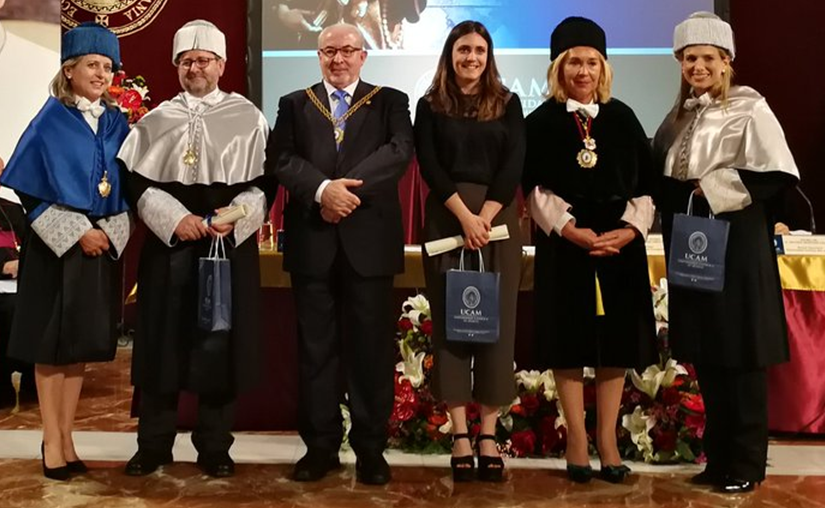 Los recién nombrados junto a la Decana de la Facultad de Enfermería de la UCAM, la Dra. Paloma Echevarría Pérez