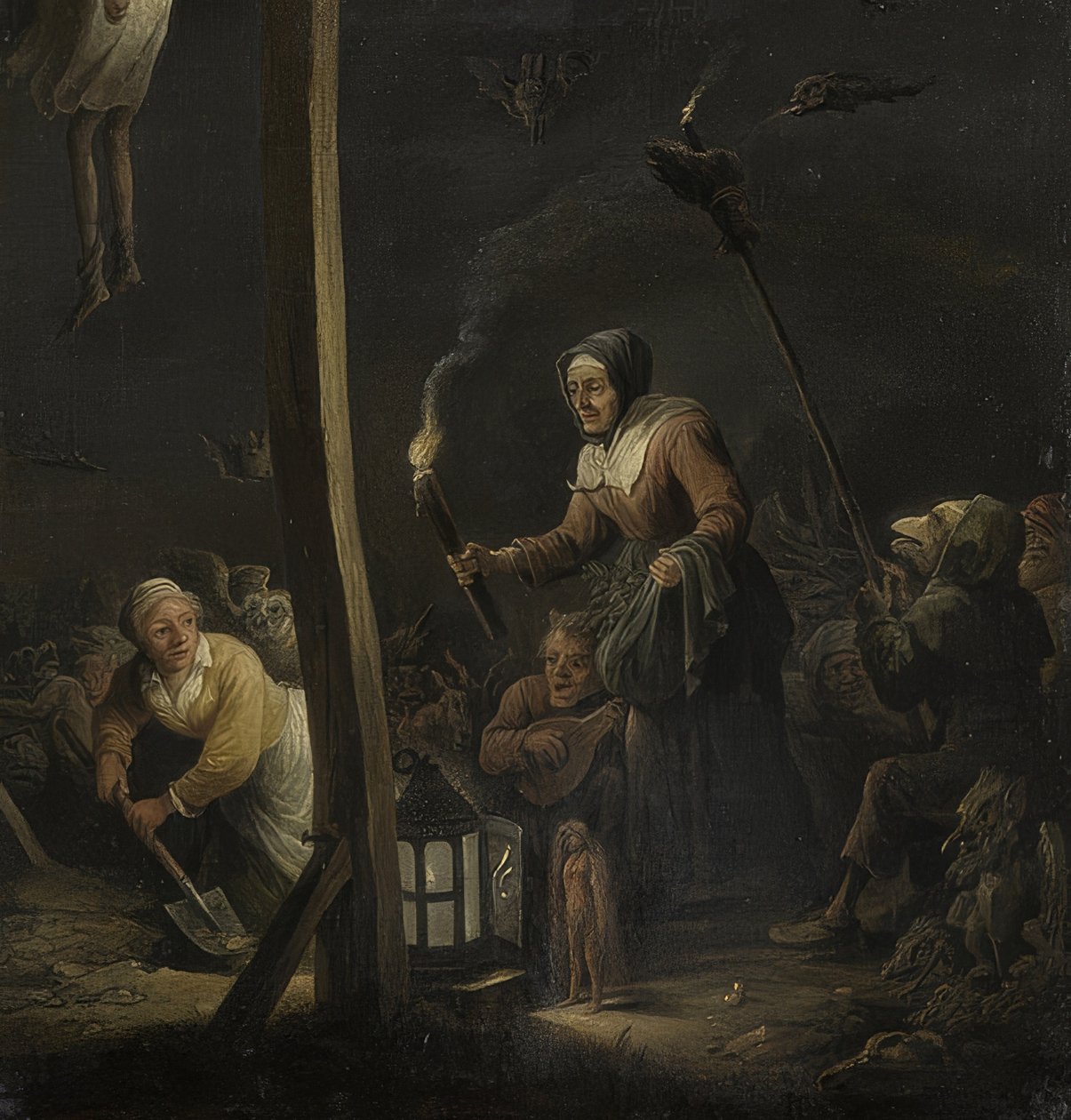 Referencia: Escena nocturna con una bruja (buscando mandrágora en la horca). David Teniers II, circa 1675. Karlsruhe, Staatliche Kunsthalle. Fuente: Wikimedia Commons