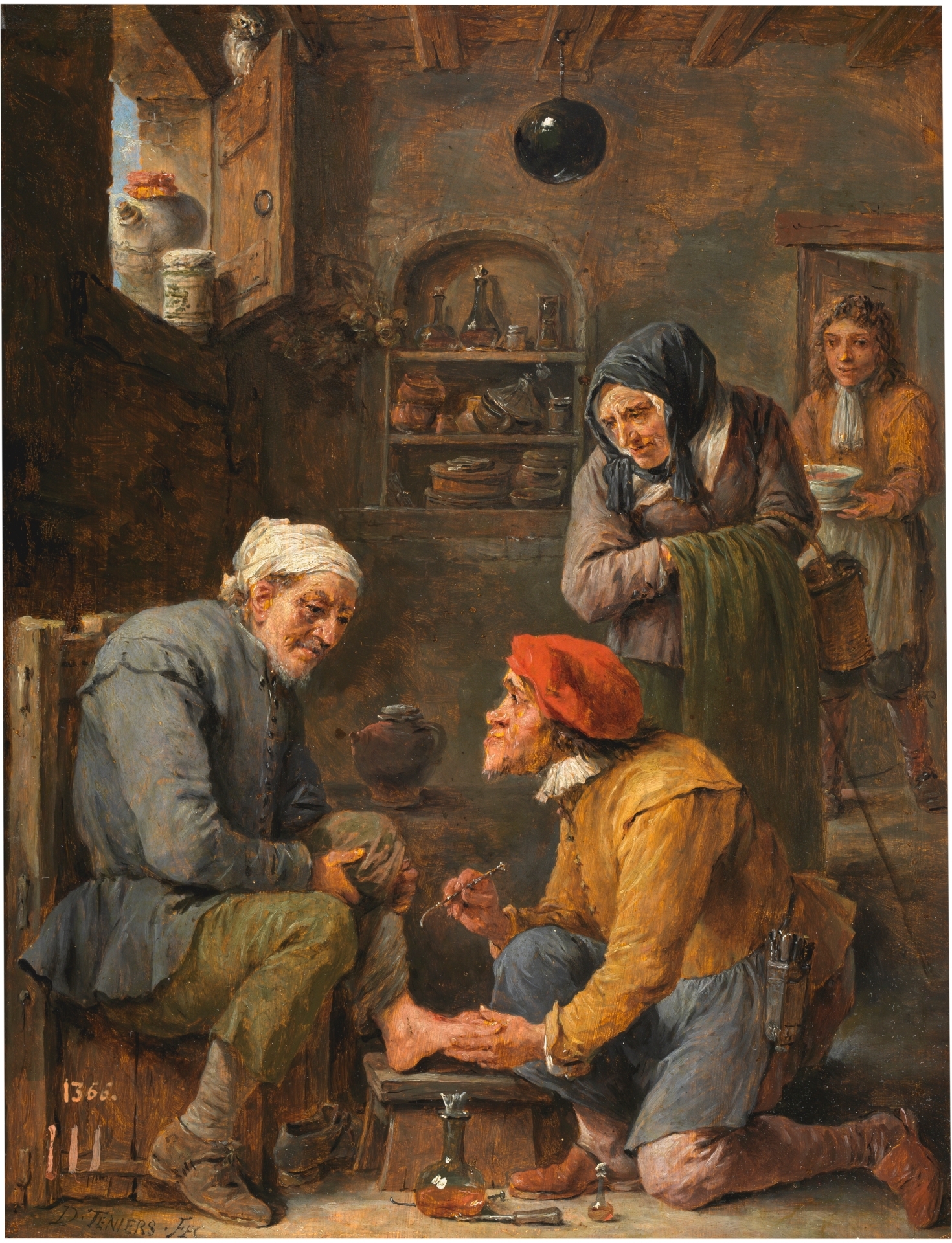 Referencia: Operación quirúrgica. David Teniers (Amberes, 1610 – Bruselas, 1690). Museo del Prado, 1631 – 1640. Óleo sobre tabla, 33 x 25 cm. Sala 077