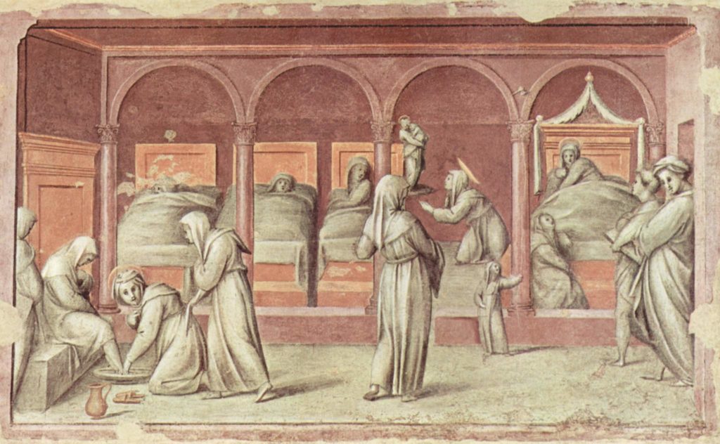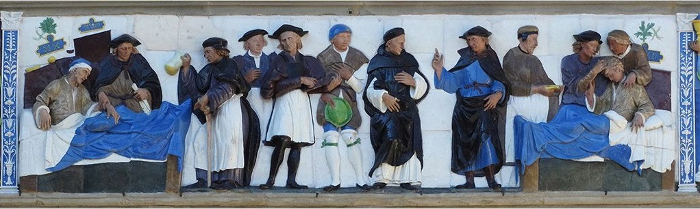 Referencia: Escena Visitando al enfermo de Santi Buglioni, del friso del Ospedale del Ceppo (entre 1525-1528), Pistoia, Italia (foto: Giacomo Guazzini)