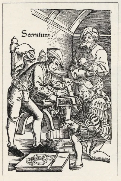 Referencia: Hans von GarsDorff. Ilustración del Manual de campo del sanador de heridas, 1540.