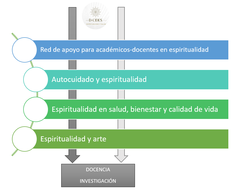 D-CIDES se crea en 2023 por un grupo multidisciplinario que trabaja para la elaboración de acciones conjuntas y propuestas prácticas destinadas a fomentar la integración del Modelo Biopsicosocial-Espiritual de Cuidados en el contenido curricular de los grados sociosanitarios y educativos. Las iniciativas de nuestro grupo de investigación están enfocadas en promover y coordinar la docencia e investigación multidisciplinaria en el ámbito de los cuidados espirituales, destacando la importancia de integrar los hallazgos científicos en la formación académica y la práctica profesional.