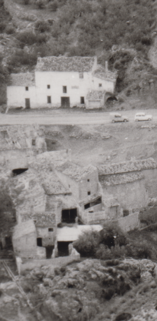 Fotografía que realicé en los años 80, entes del derribo de la Venta de Carvajal, a partir de la cual realicé la plumilla que ilustra el artículo. Debajo de la venta, la cortijada del Horno del Vidrio.